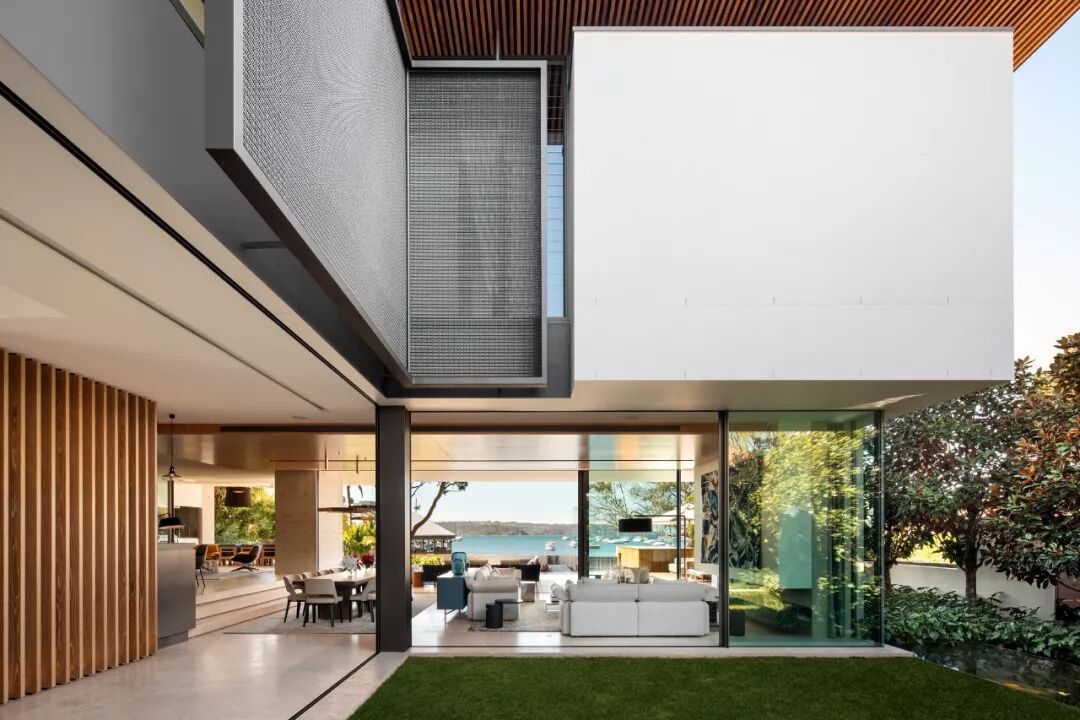 该建筑位于一个强烈线性比例的场地上,是流动敞开的空间,将景观和水体带入房屋内部,营造出更大的空间感。