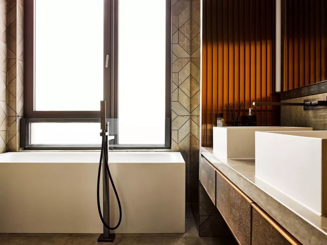基于对细节的苛求,凹凸有序的古铜格栅形成过渡,让每一面都超凡脱俗。