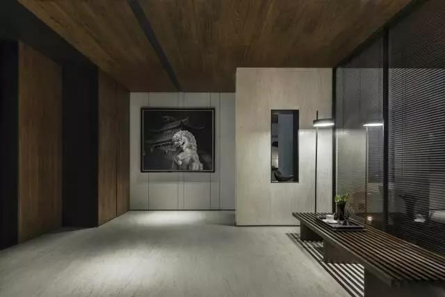 原创艺术画作的介入,则成为空间里的亮睛之笔,为空间体验者带来过目不忘的感官与精神享受。入户左侧的墙面上,是来自中国青年艺术家郑元师的一幅极具视觉震撼力的当代艺术作品《神游·嘉峪关》,画面中庄严的石狮和嘉峪关城楼是中华文明的象征,而一只仿佛从西方世界穿越来的、肆意驰骋的恐龙则带有作者或观者的视角。古与今、中与西,待解读的神秘与幽默感。