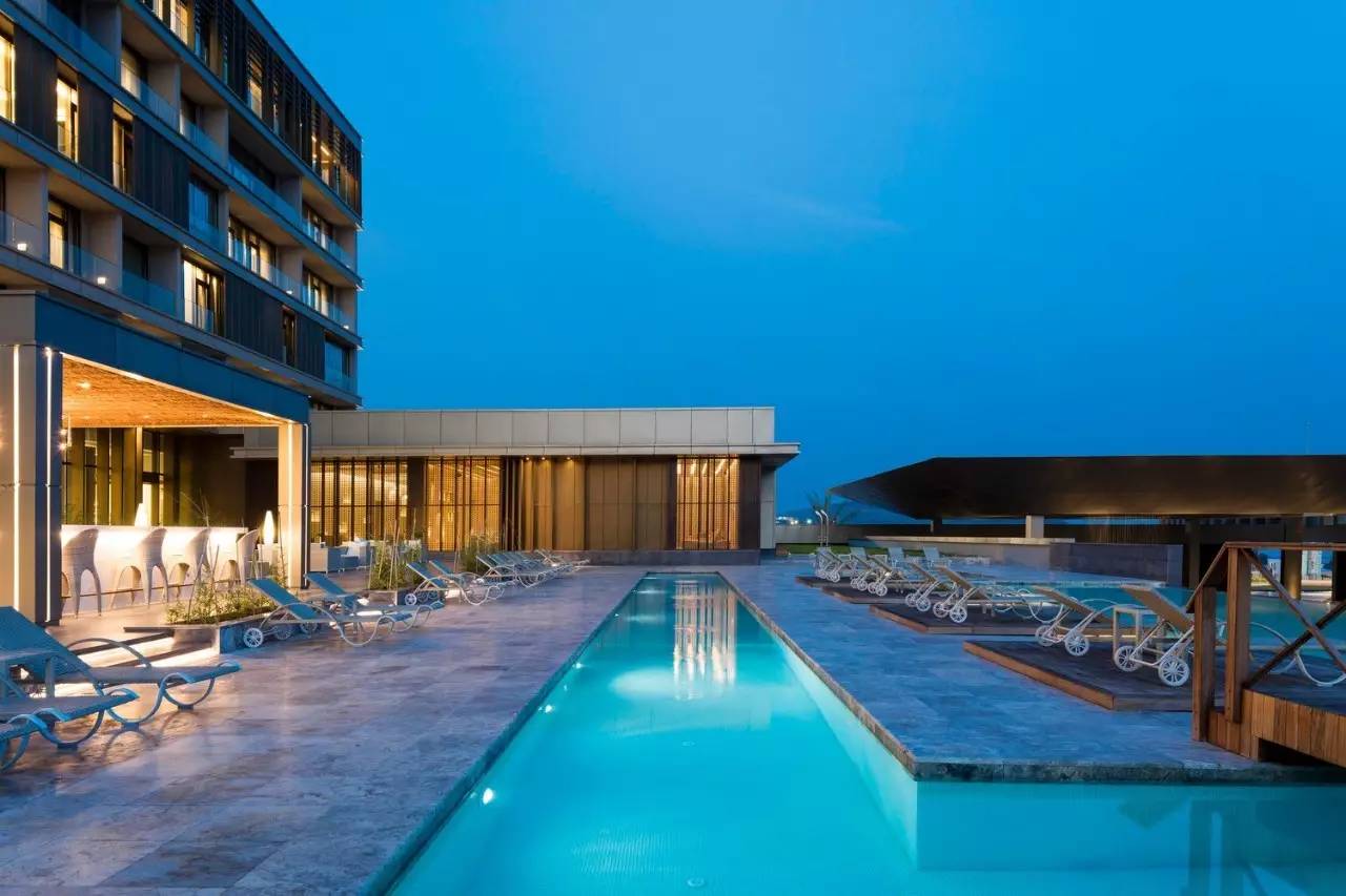 人行道路连接了从酒店游泳池到举办重大活动的庭院,同时庭院也作为公共广场的扩展,再次连接了东西两边的连廊。