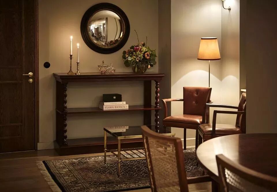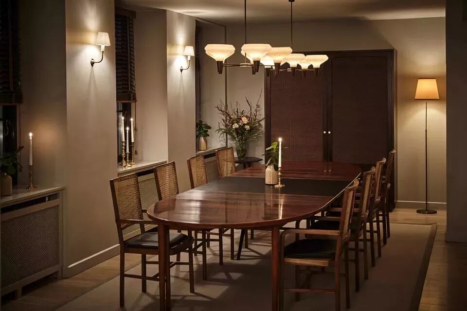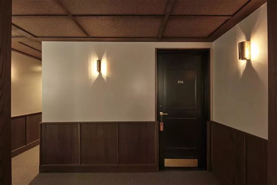 酒店内的灯光也经过了精心设计,为哥本哈根漫长而昏暗的冬天带来了光亮。好的照明关键是要防止光线过量,以免破坏空间的气氛,这对于Sanders酒店来说尤其重要。设计师尽可能地不去使用造型过于显眼的灯,使人们的视觉免于受到特定灯具或材料的干扰,从而营造出平衡、柔和且层次分明的灯光效果,同时为空间赋予统一的感觉。