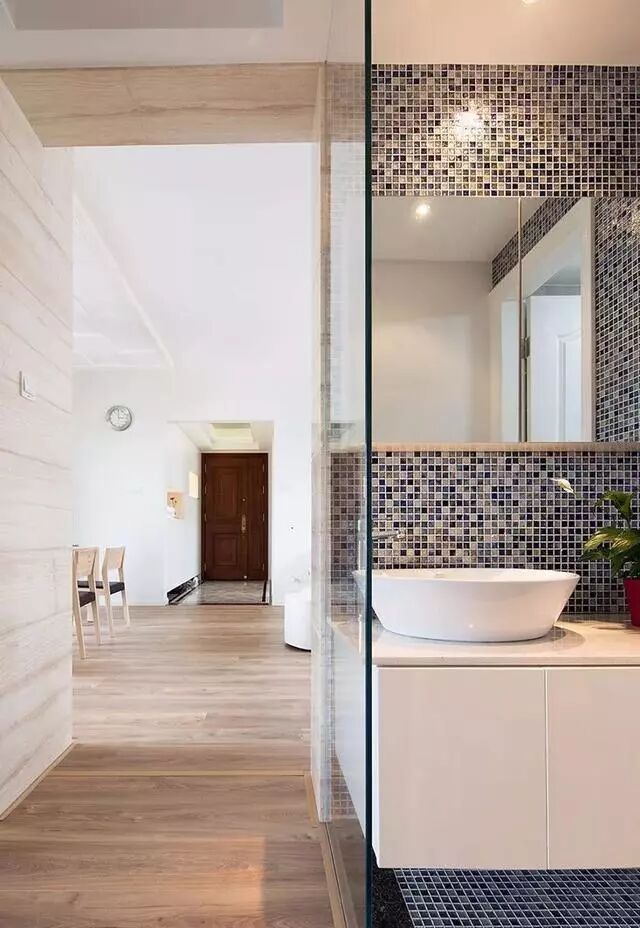对于喜欢有明确隔断效果又不高兴砌墙的朋友,玻璃隔断则是一个很好的选择。隔音效果和隔断感都比较强,同时又因为玻璃的材质让家里看起来依旧通透明亮。