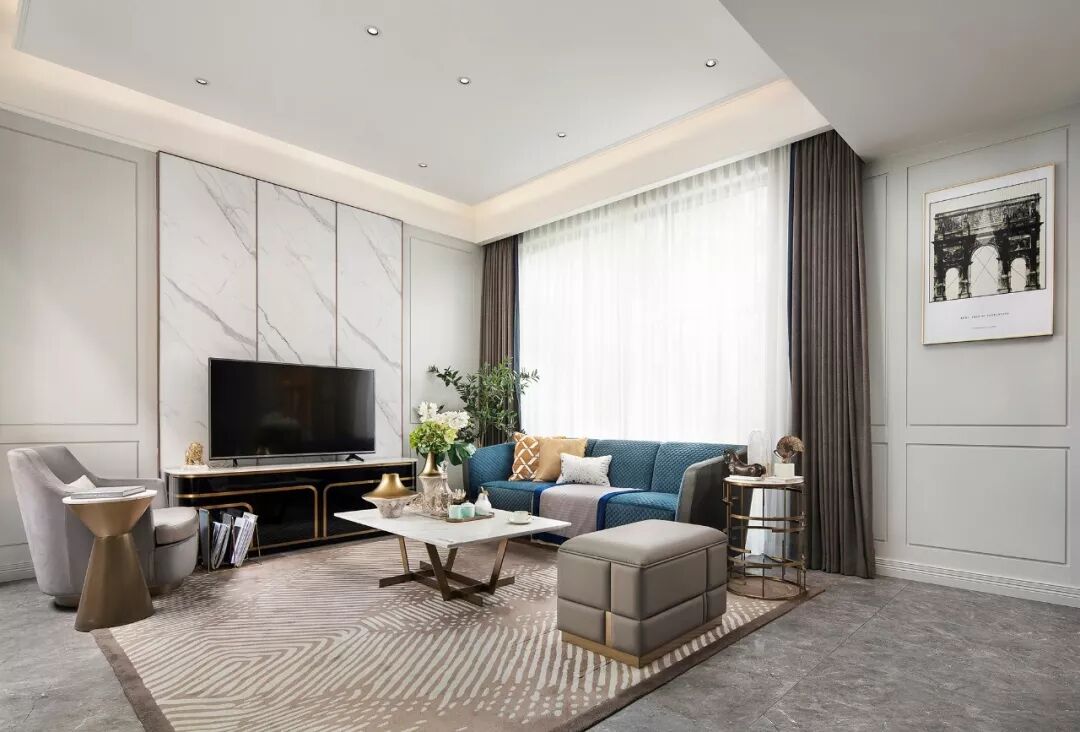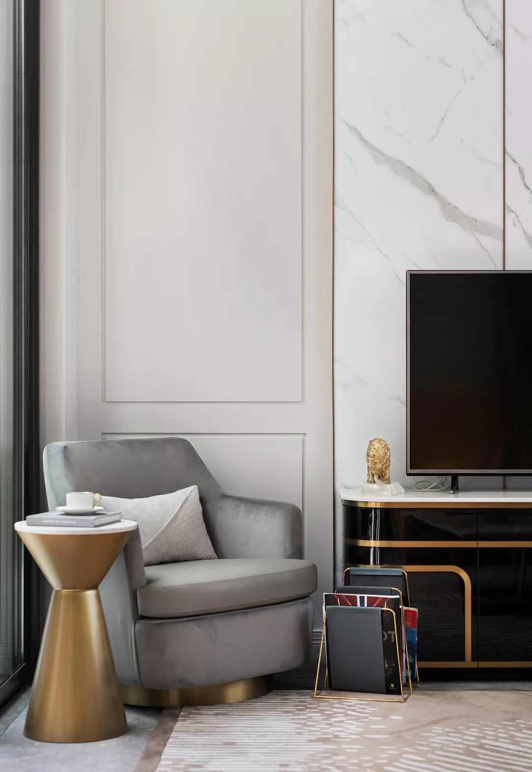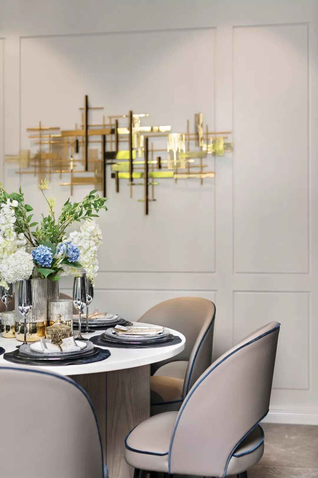 创时空将对于家的期待转译成设计的语汇,选用素白色的极简法式背景墙、水波纹理石饰面来定义空间的清雅柔和,雅致的雾霾蓝与格纹轻轻地挑起空间的韵律美感,搭配纯白花艺,空间附着着一层恰到好处、不过于浓郁的浪漫情调。阳光透散过微透的纱帘为空间染上一抹暖意,令人们不觉沉溺于韶华中的闲适与安缓。