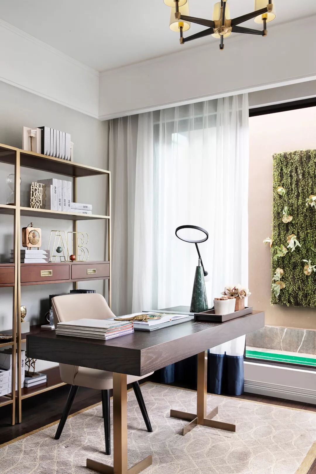 一桌一柜,还有一窗连接自然,造型奇特的灯饰与艺术品,点缀空间简雅与时尚的艺术格调。在这样简净风格的书房中放松自我,可以随时拥抱生活的随意与闲适。