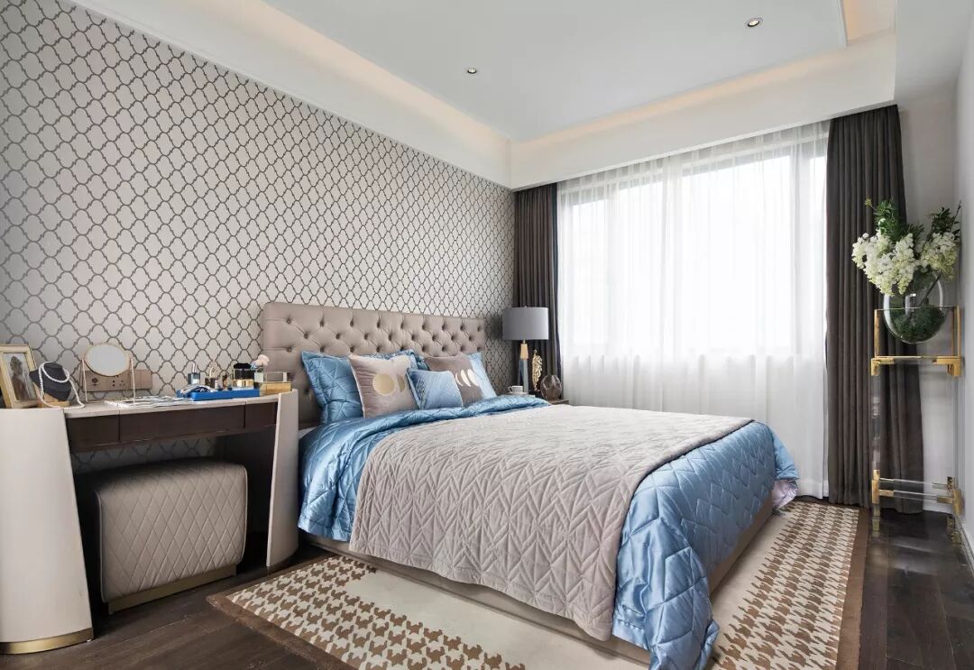 主卧设计选用亚棕色的基调,渲染着雅澹的居室氛围,木质、合金、软包材料的运用增加了质感的丰富性。空间内的美感由饰面上的纹理一层层地延展开来,仿佛协奏着一首古典钢琴乐曲,曼妙而舒缓身心。