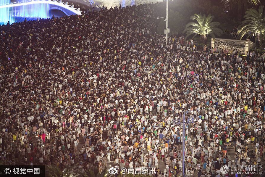 7月30日晚,南昌新八一广场的喷泉随着阵阵军歌声激情喷放,众多南昌市民携家带口,领略南昌八一广场的夜间美景。