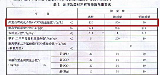 地坪国家标准:GB/T 22374 -2008《地坪涂装材料》对于环氧地坪产品挥发性有机化合物(VOC)质量浓度限量有明确的规定:溶剂型限量值为500g/L,水性为120g/L,无溶剂型仅为60g/L。值得一提的是,富思特也是该地坪国标的参编单位哦~