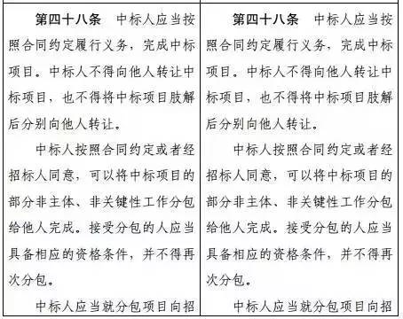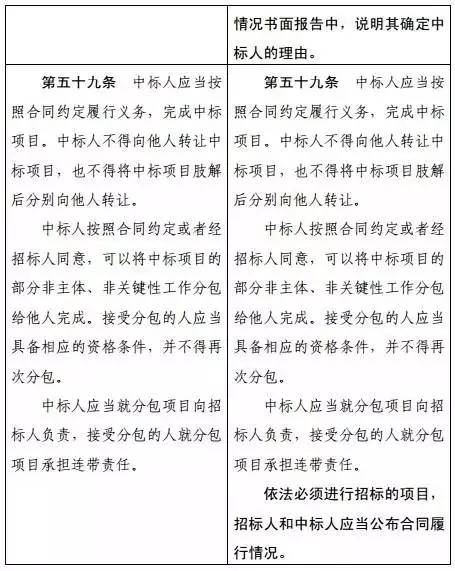 3、修改后的内容对合同履行情况增设了一条规定:“依法必须进行招标的项目,招标人和中标人应当公布合同履行情况。”