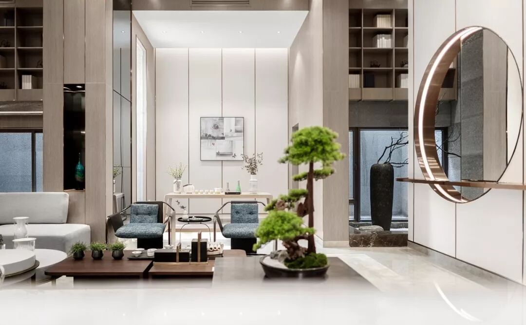 此次项目位于广东佛山,设计师以轻描淡写的手法,描绘块面柔化转角,将心中所思所想都倾注于此,打造出一个飘渺灵动又充满韵味的空间,瞬时让人忘却俗世的繁华喧嚣。