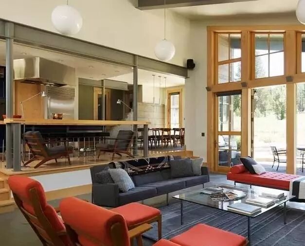客厅与其他空间的连接凭借台阶的过渡