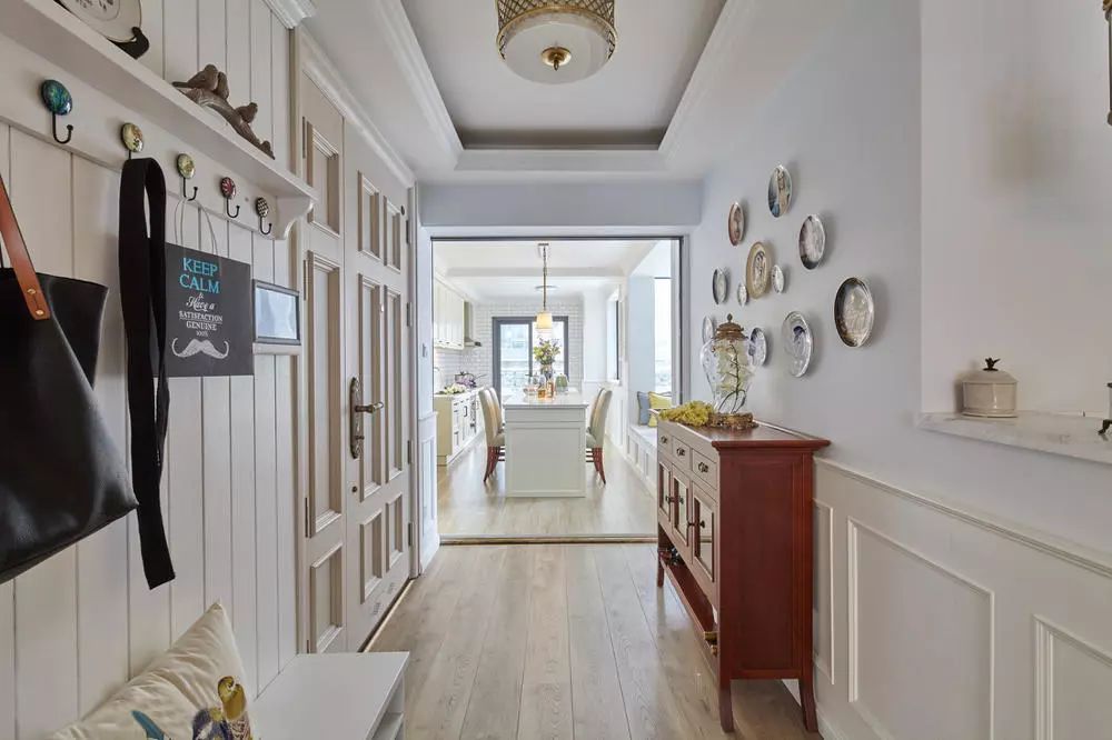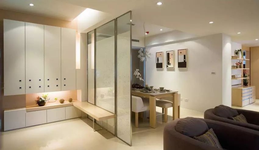 一进门就是入户玄关,在玄关处打一柜方便存放鞋子、钥匙、包包等,如果空间足够还能存放一些其他生活物品。这样玄关处就变得整洁了。