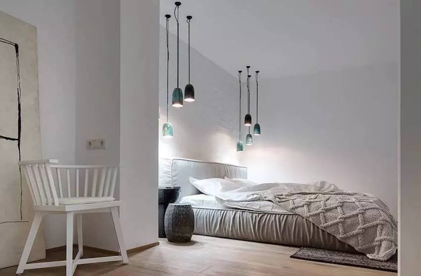 以白色为主基调,穿插木质或金属提升空间质感与层次感,使整体空间清爽、明亮;天花板垂吊的造型灯饰,搭配走道上与墙边点亮的蜡烛,用多光源为空间补上满满暖意和生活味。