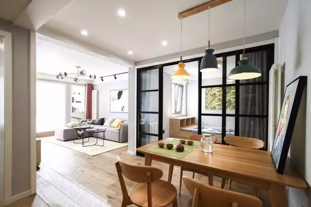 推拉门隔断应该是用的比较多的一种隔断方法,隔而不断,拉开关闭都很随心,隔断效果也不错。