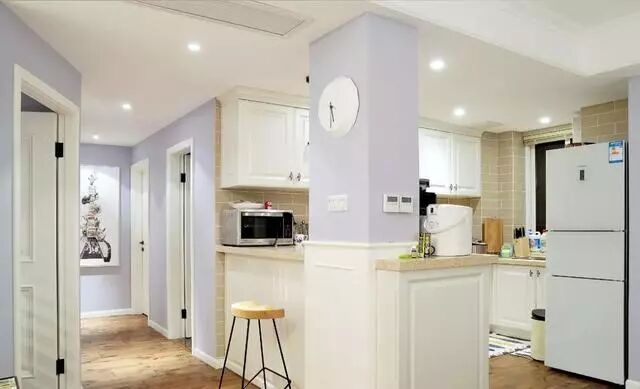 不知道厨房区域如何分割?除了推拉门之外,喜欢开放式厨房的朋友则可以选择做个小吧台,它也可以成为用餐区,这样一来不仅貌美而且有效提高了空间利用率。